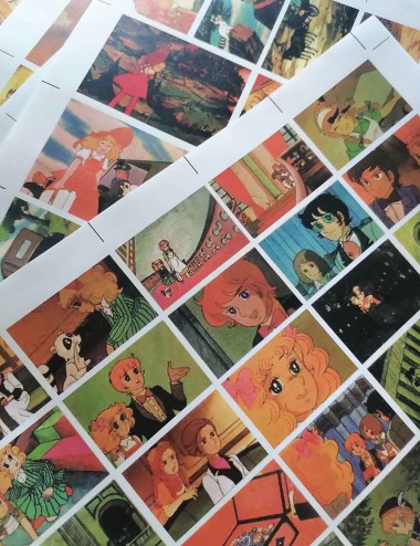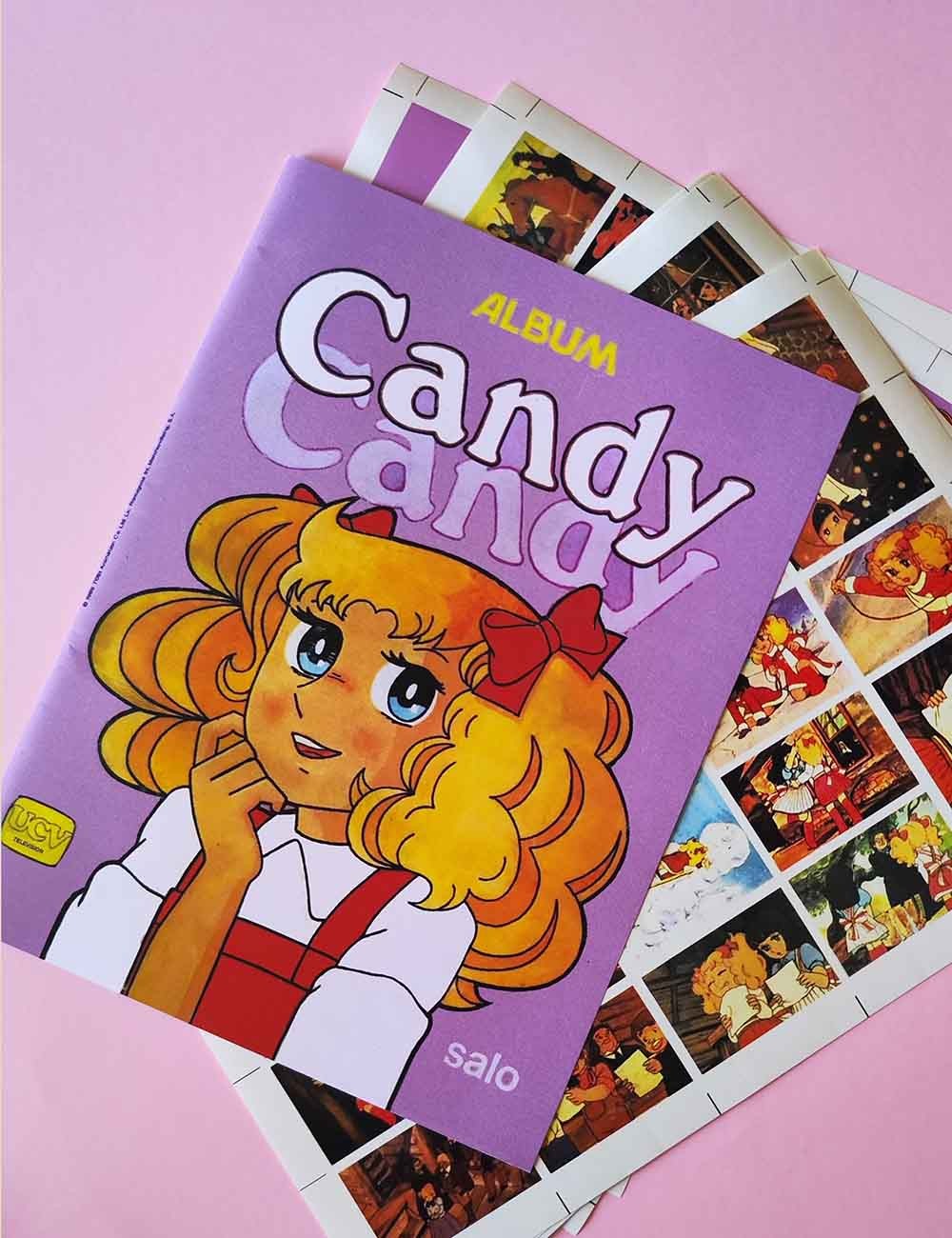 Álbum Candy, en una versión con láminas autoadhesivas para pegar. Réplica exacta del álbum original en tamaño e impresión. Hojas interiores impresas en papel bond 80 gramos y tapas, en bond 140 gramos. Escala original. Incluye el álbum vacío y sus 163 láminas en pliegos para que recortes y pegues.