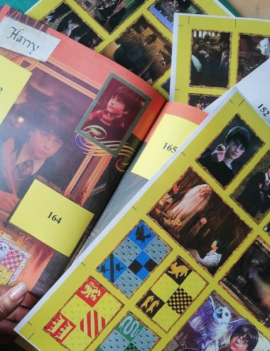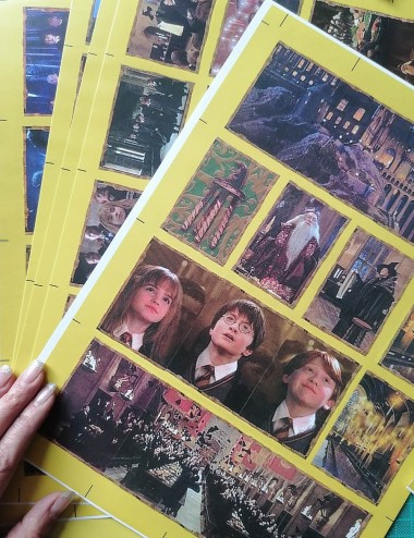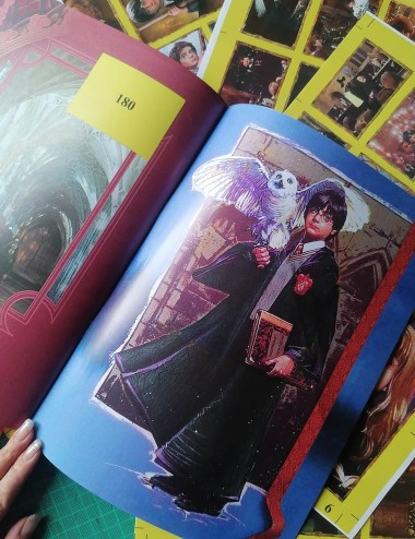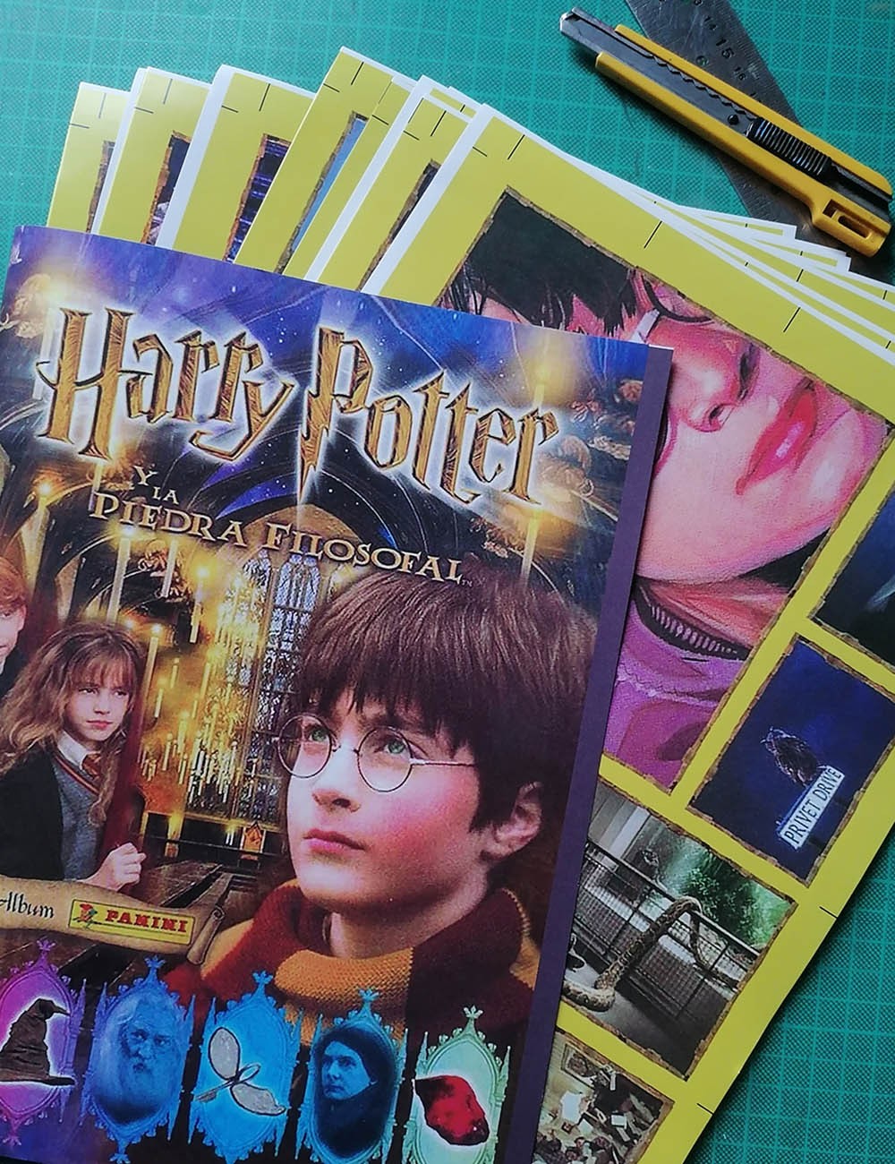 Álbum Harry Potter, en una versión con láminas autoadhesivas para pegar. Réplica exacta del álbum original en tamaño e impresión. Hojas interiores impresas en papel bond 80 gramos y tapas, en bond 140 gramos. Escala original. Incluye el álbum vacío y todas sus láminas en pliegos para que recortes y pegues.