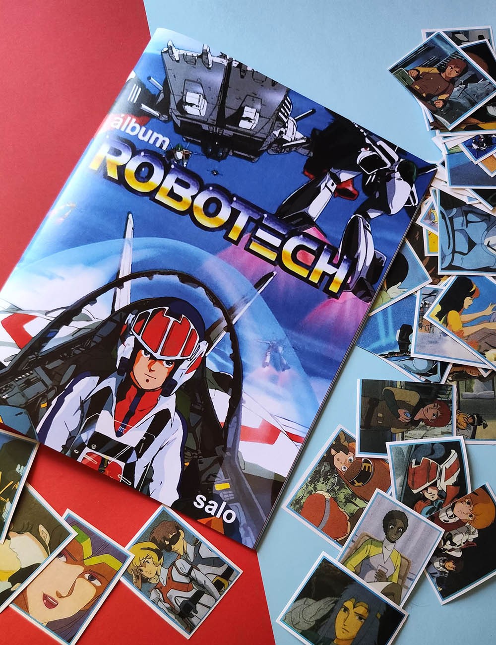 Álbum Robotech, en una versión con láminas autoadhesivas para pegar. Réplica exacta del álbum original en tamaño e impresión. Hojas interiores impresas en papel bond 80 gramos y tapas, en bond 140 gramos. Escala original. Viene completo con todas sus 180 láminas, ¡¡¡incluida la 020!!!!